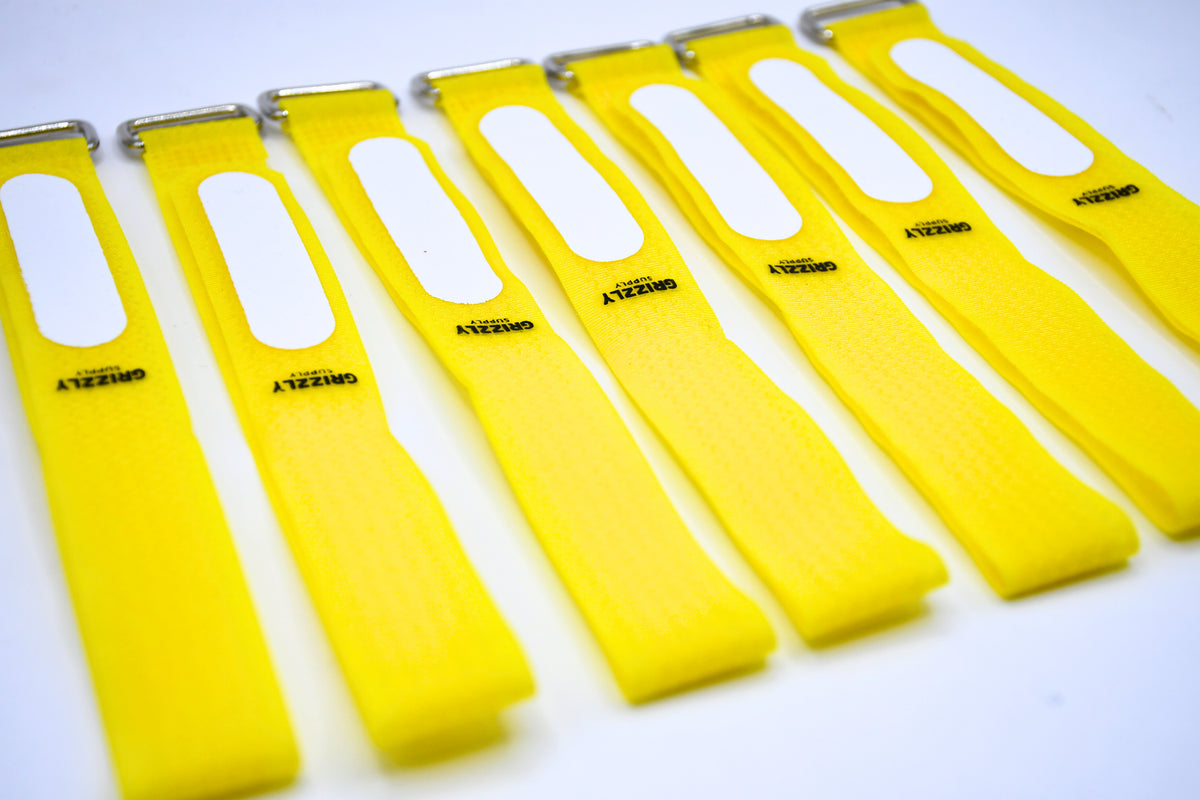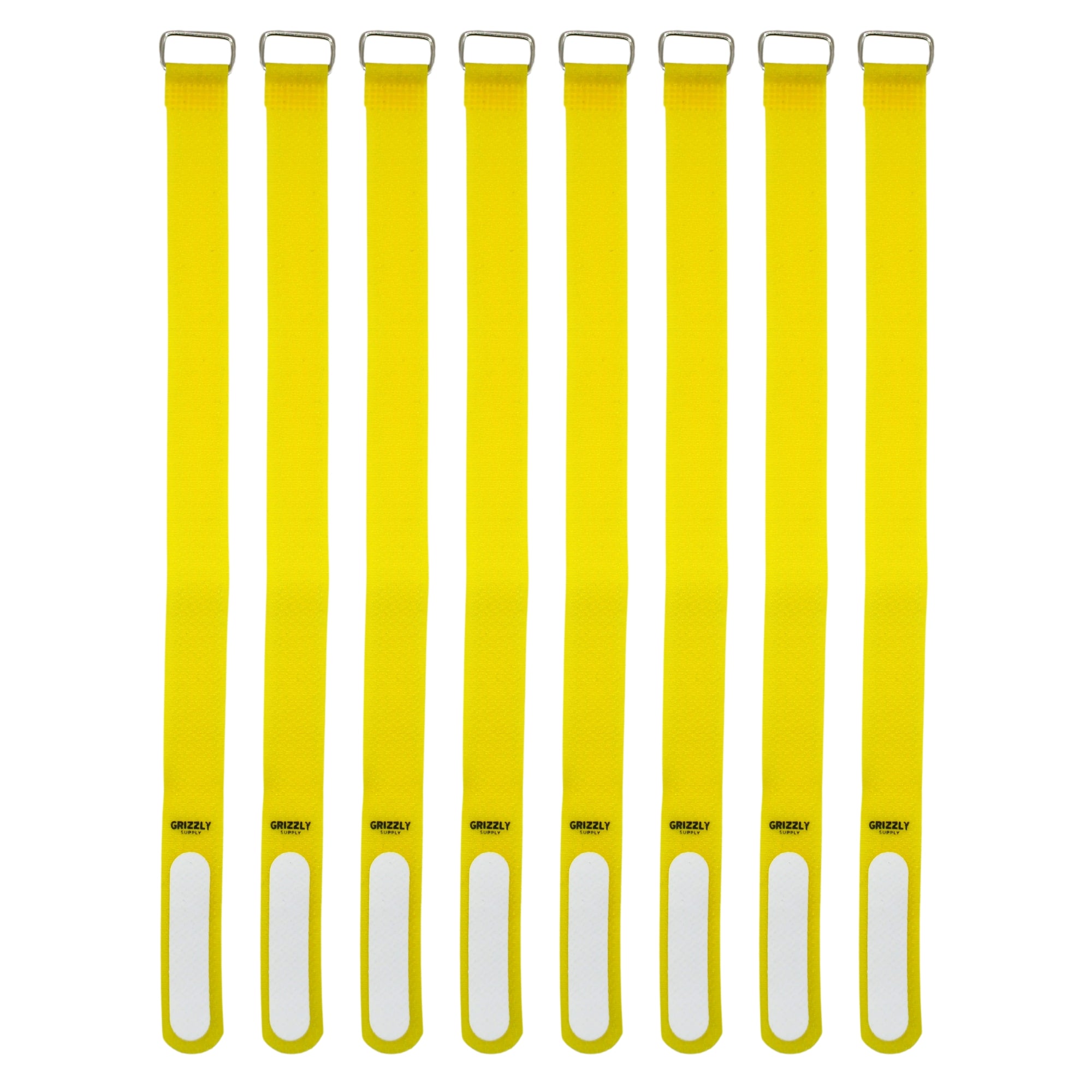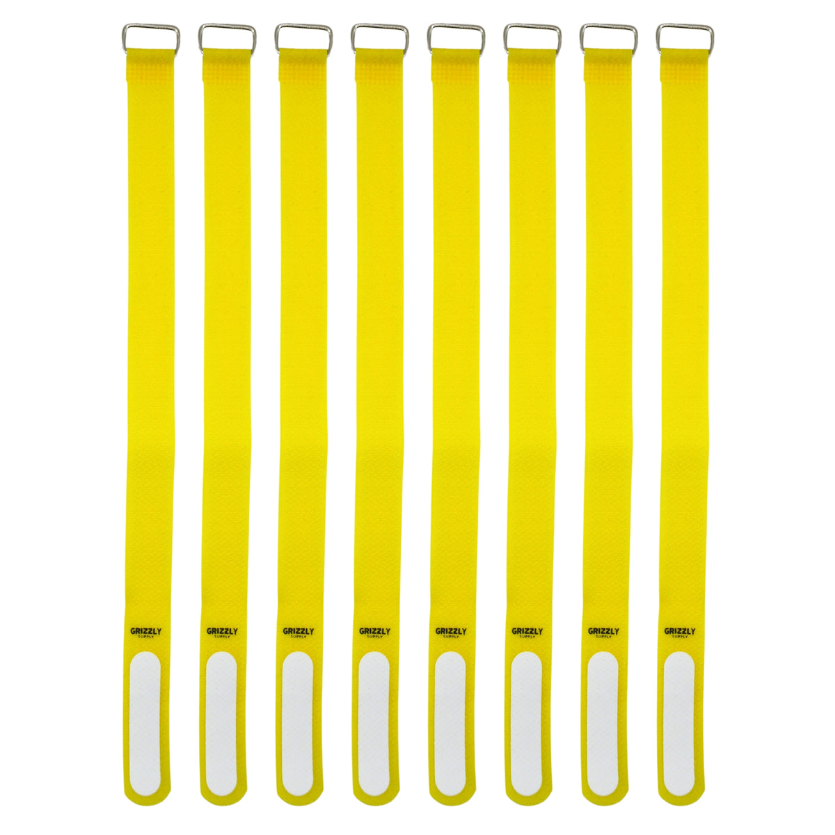 Grizzly Supply 12" Yellow Hook and Loop Cinch Straps – Pack of 8