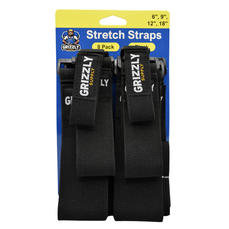 Grizzly Supply 6" (2piece), 9" (2piece), 12" (2piece), 18" (2piece) Black Hook and Loop Stretch Strap