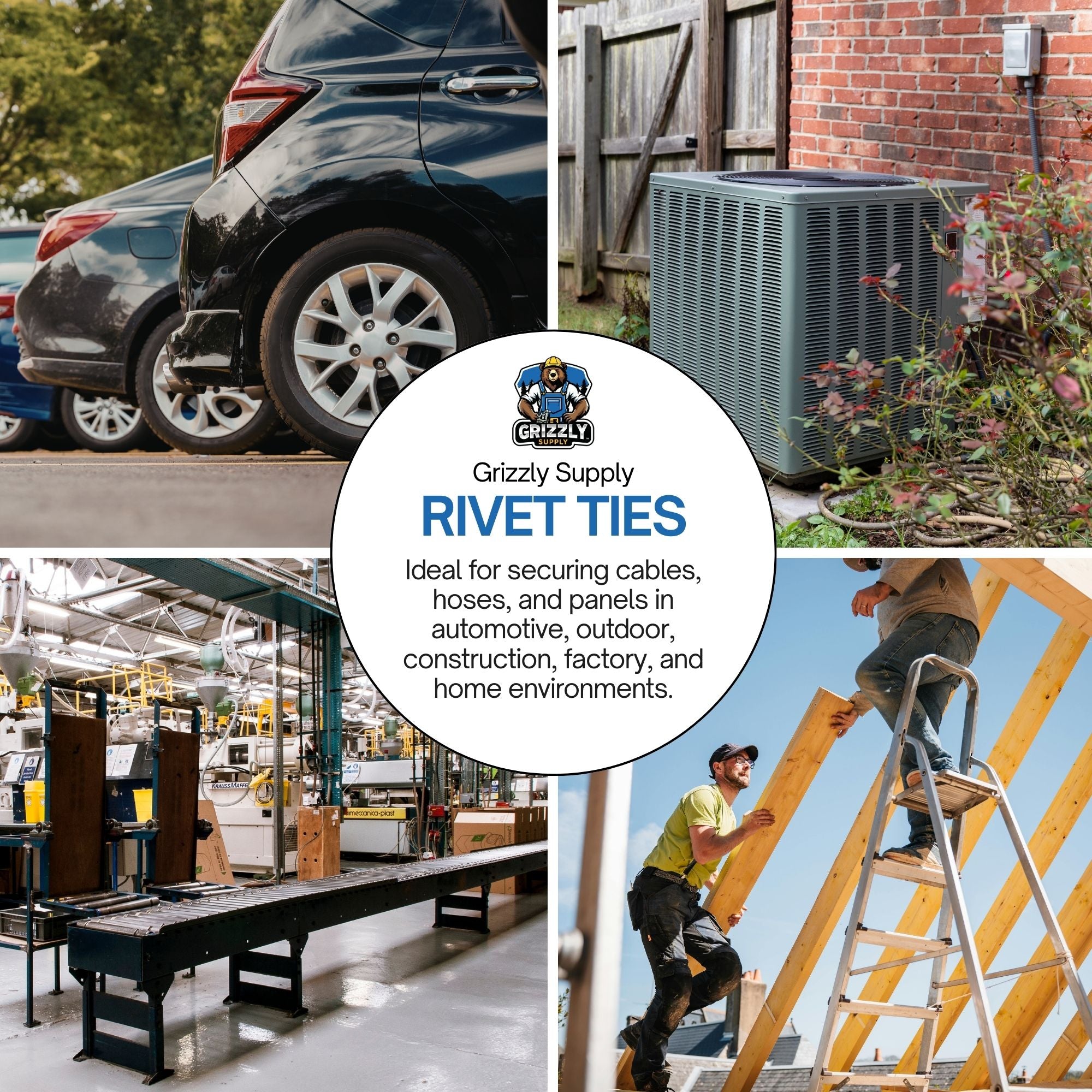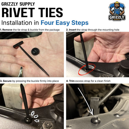 - Fast One-Step Installation – Bundle cables and press the rivet into the mounting hole.