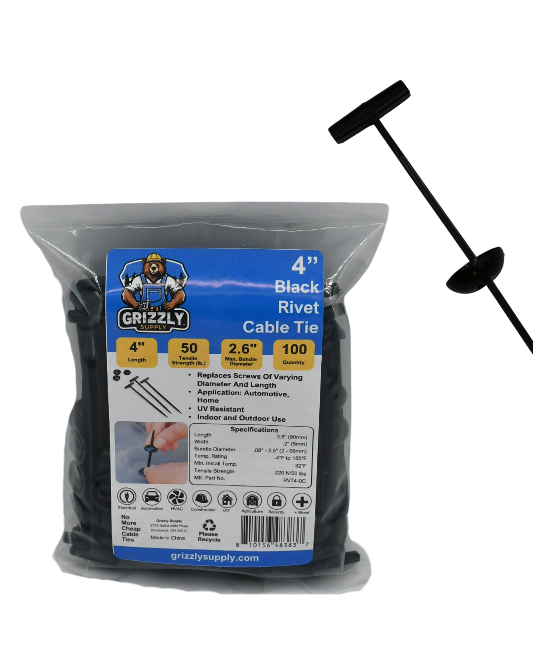 Each pack includes 100 rivet ties, making them ideal for technicians, installers, and production environments.